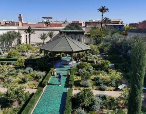 Marrakech能有如今世界的知名度,其实还得归功于这座美伦的艺术花园。最初法国画家Jardin Majorelle在此处将其打造出私密庭园,而后时尚帝YvesSaint-Laurent又从此获取了无数的创作灵感。如今这里每日来此参观的世界旅者络绎不断,而这座充满法式浪漫气息的非洲花园也也逐渐在全球飙升热度。这里参观票价为50迪拉姆/人,整座花园其实面积并不大,不到半小时便可游尽,但花园内随处可见的设计艺术及景观总会吸引着观赏者驻足,可谓是小而精致的隐市别墅。