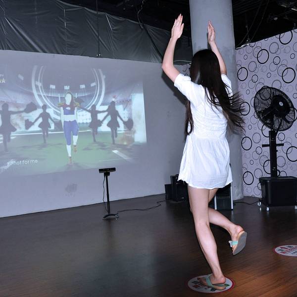 除了各种摆拍的道具,里面还有体感游戏,比如KBOX玩水果忍者、跟着跳舞机一起DANCE,我超爱这个,玩了好久,比一般的跳舞毯高级不知道哪里去,虽然我不会舞,跟着一起蹦蹦跳跳也超开心。