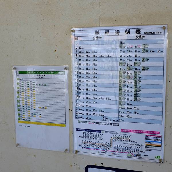 不出站‼️就可以拍到大海跟站牌,可以通过天桥走到对面那个站牌,背景是大海🌊,个人觉得还是很出片的,拍完就可以坐车继续前往小樽啦 - 约15分钟一趟车,不用着急可以慢慢拍,车来了直接上,不用再刷卡