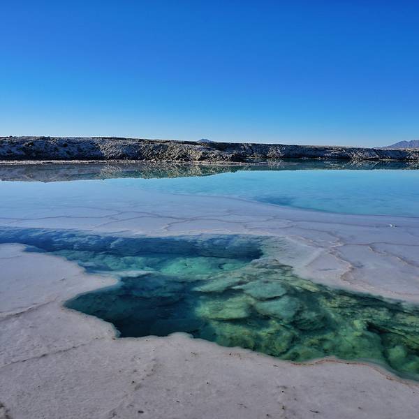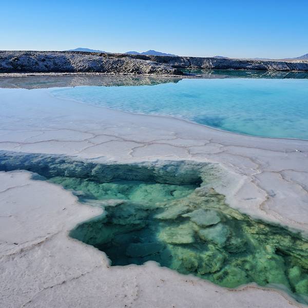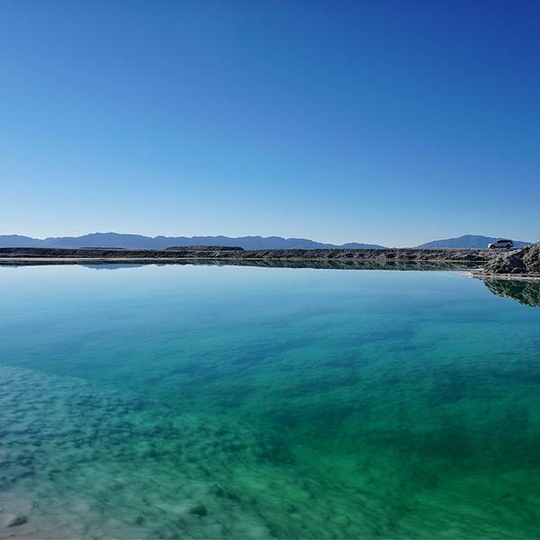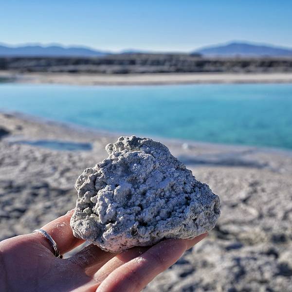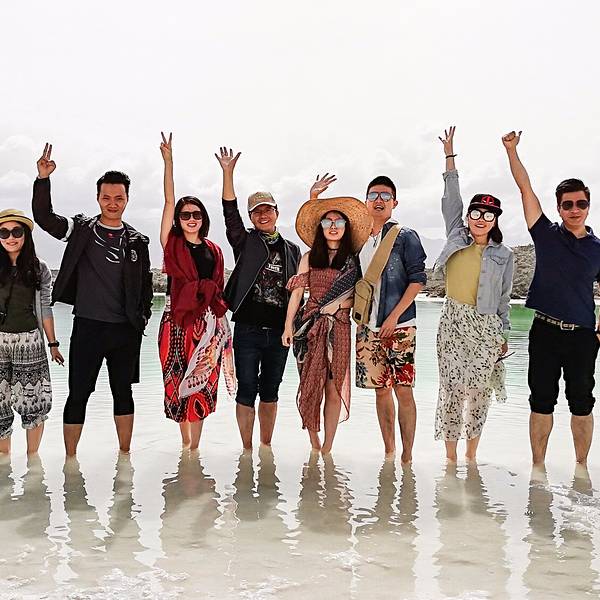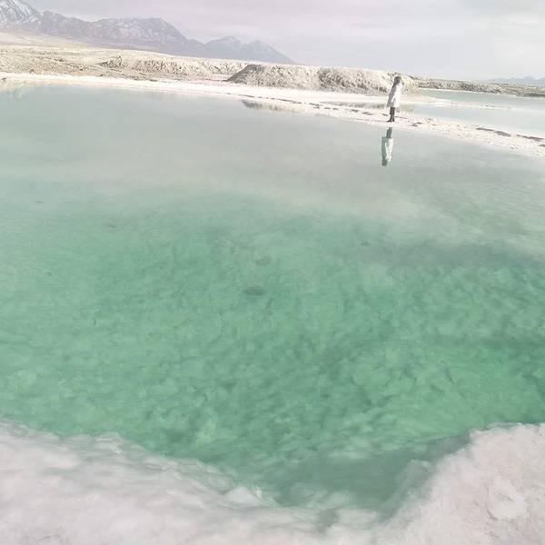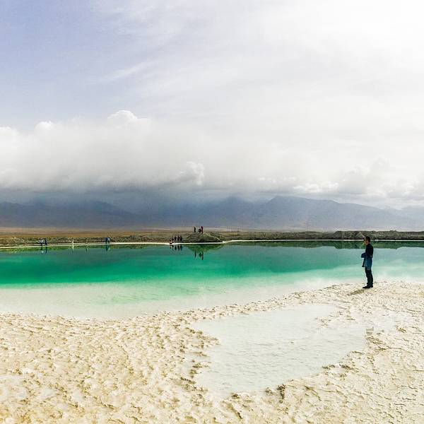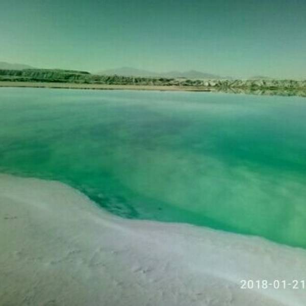 当车子抵近湖边,映入眼帘的则是纯净白色的盐晶体,翡翠湖则被包围在这片晃眼的糯白之中。糯白镶边,翡翠其中,这简直是一块绝世无双上好的宝石毛料。自然天成,价值连城,妙,妙,上天啊,你真是神工伟大,把那么美丽的景观馈赠给人类,让我们,能尽情饱览着这无尽的奇迹…