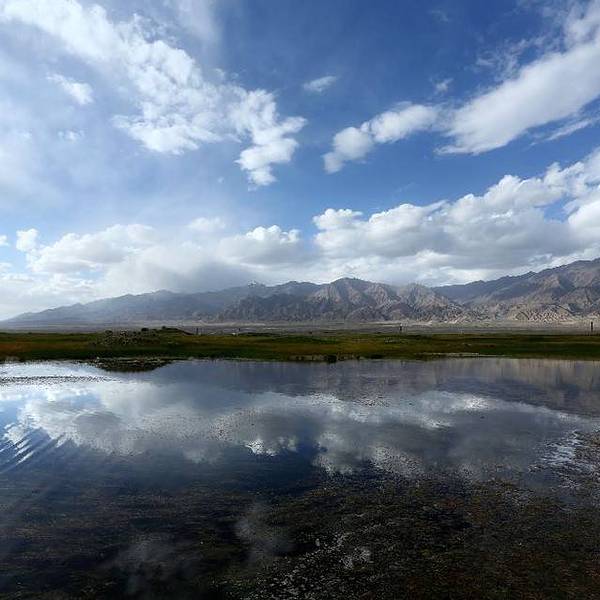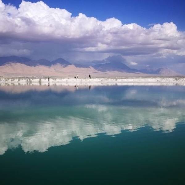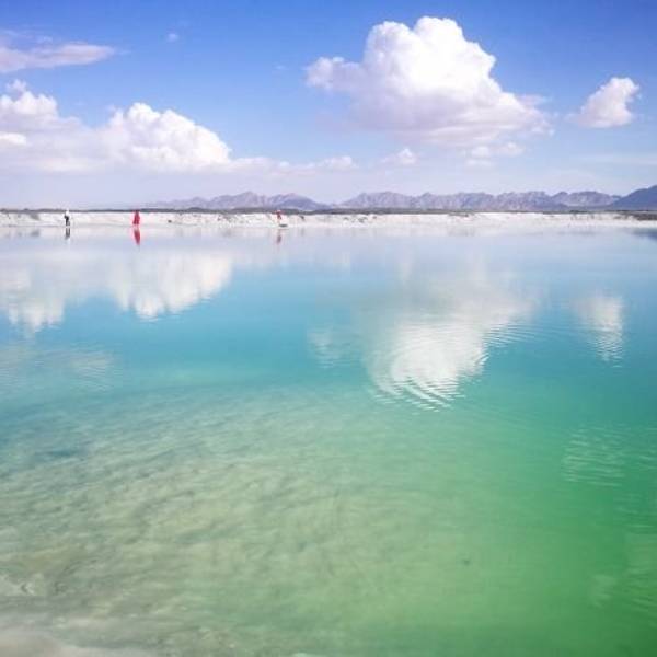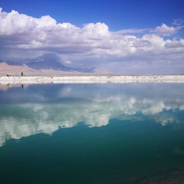大柴旦远在柴达木盆地的深处,依偎在昆仑山脉脚下,而翡翠湖就深藏在这里的蓝天下,隐没在白云间。千里迢迢,终于来到了这个美丽的神话世界,一睹翡翠湖的风彩。