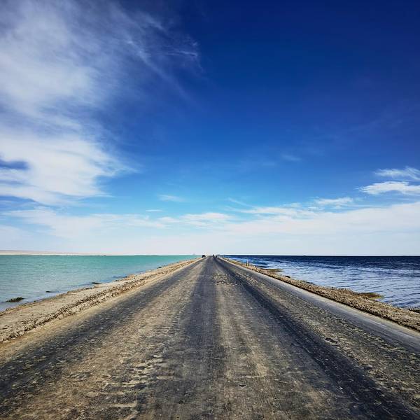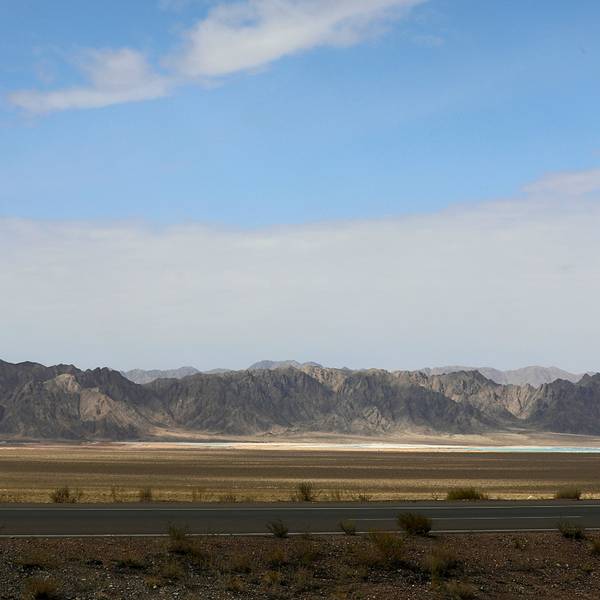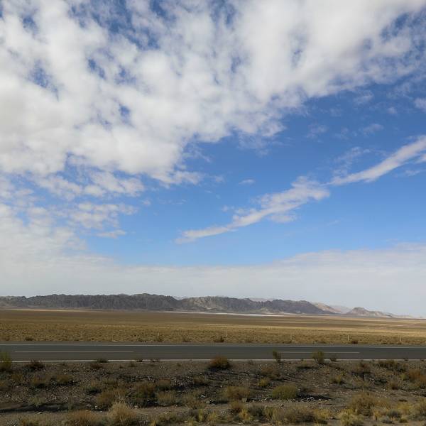 沿途,除了贫瘠的土地,也还有美景偶露“峥嵘”, 大、小柴旦湖便是。途中景。行驶750公里、11小时行驶750公里、11小时。荒凉的土地途中景不到大西北,不知她有多辽阔。车辆几乎一直行在荒野,总无尽头,途中可以很久很久见不到一个村庄,甚至连一处房屋都见不到。
