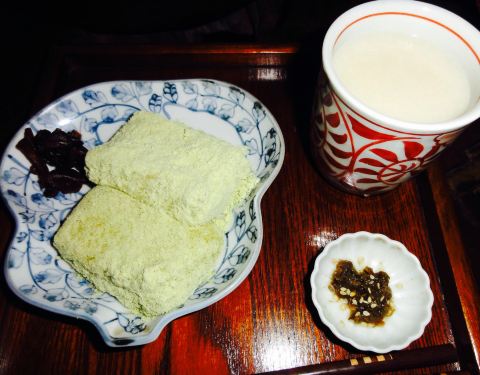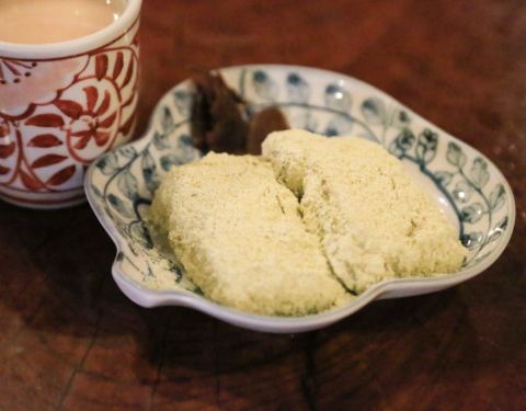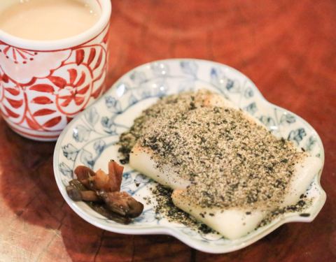 黑芝麻磨成细粉,满口酥香,淡淡甜味非常好吃。直到现在依旧保留了当时原汁原味的菜品甘酒和力饼