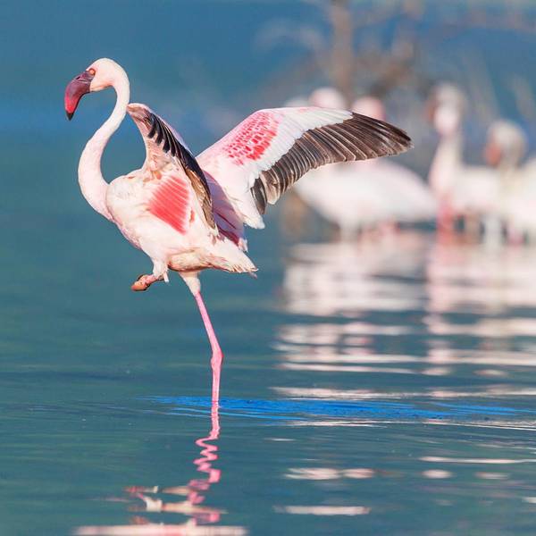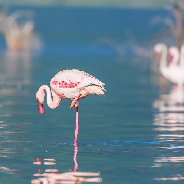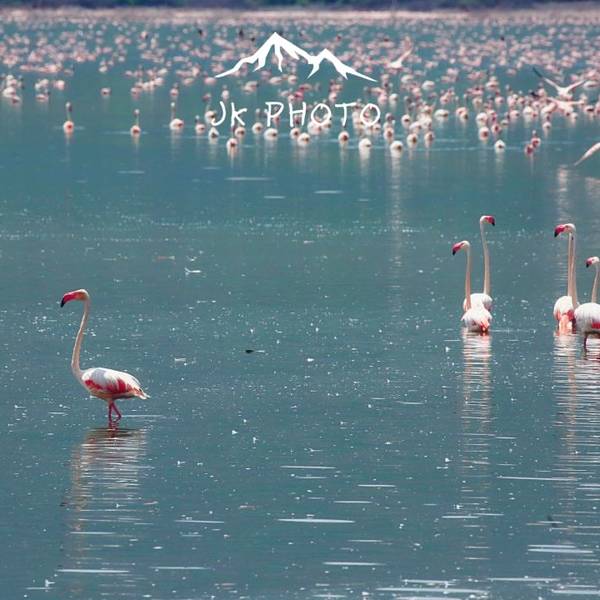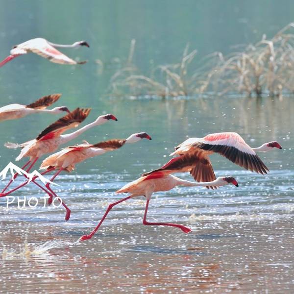 火烈鸟,是这片湖泊的宠儿和骄傲,它们清新脱俗的美丽,点缀着这片碧绿的湖水