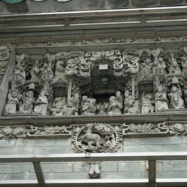 佛山祖庙正殿瓦脊,由“文如壁”店在清光绪元年(1875)制作,高1.6米,长31.6米,两边各有人物,动物155个。是石湾瓦脊艺术的代表作。石湾公仔与粤剧的关系也是唇齿相依,石湾公仔出现更早,当粤剧出现后,反过影响了陶塑的题材和造型。岭南砖雕图穷匕现。雷震子