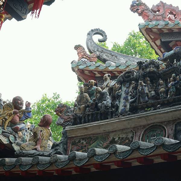灵应祠飞檐叠翠,华丽壮观。设于祠内的陶塑、灰塑、瓦塑历经百年风雨,其釉色仍光亮如新,可见其精湛的制造工艺。仔细看“灵应祠”的金色匾额,会发现上方还有小小的“敕封”二字,原来,明景泰三年,佛山祖庙被正式敕封为灵应祠,景泰帝命地方官员每年行春秋谕祭,祖庙的官方地位就此奠定。