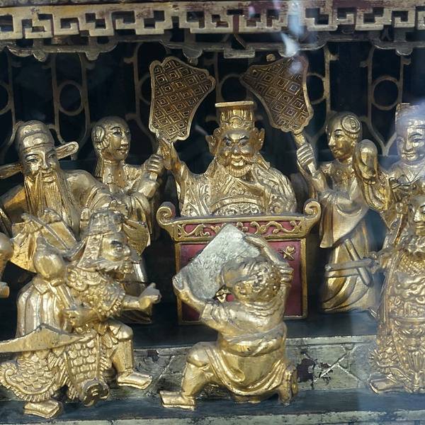 是石湾瓦脊艺术的代表作佛山祖庙正殿瓦脊,由“文如壁”店在清光绪元年(1875)制作,高1.6米,长31.6米,两边各有人物,动物155个。是石湾瓦脊艺术的代表作。石湾公仔与粤剧的关系也是唇齿相依,石湾公仔出现更早,当粤剧出现后,反过...佛山祖庙正殿瓦脊,由“文如壁”店在清光绪元年(1875)制作,高1.6米,长31.6米,两边各有人物,动物155个。是石湾瓦脊艺术的代表作。石湾公仔与粤剧的关系也是唇齿相依,石湾公仔出现更早,当粤剧出现后,反过影响了陶塑的题材和造型。岭南砖雕图穷匕现。雷震子 展开