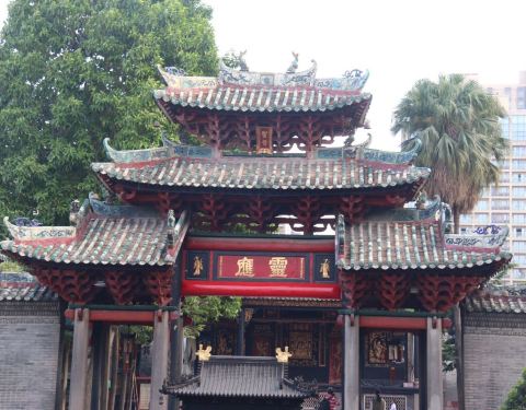 佛山灵应祠在祖庙里面,有五百多年历史。灵应祠原来是当地人供奉北帝的庙宇,明朝时,朝廷列为国寺,成为官方祭祀之地。灵应祠的灵应牌坊华丽壮观,体现了当时高超的建筑艺术,就算经历12级台风也安然无恙。