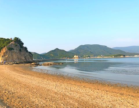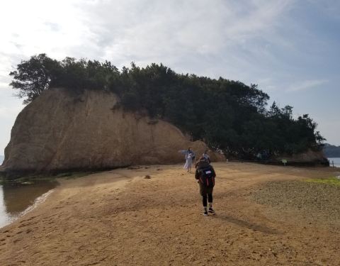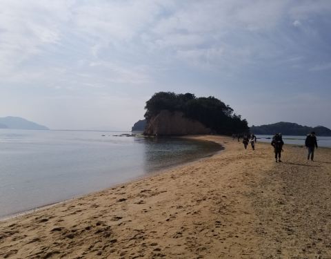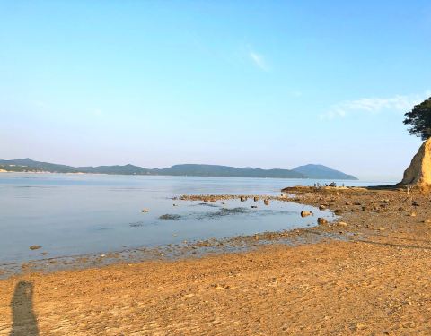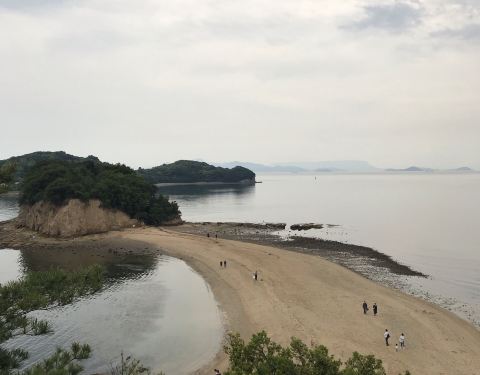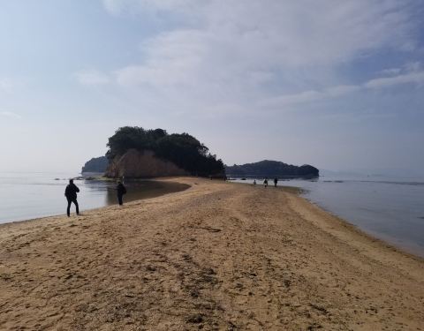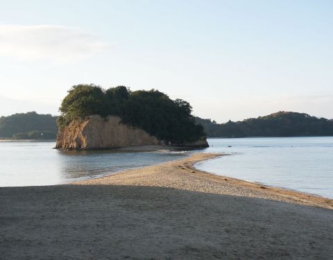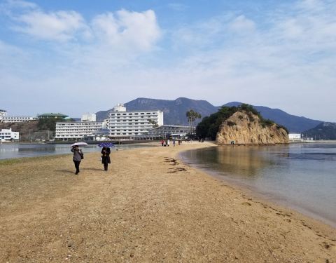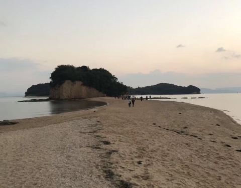 小豆岛最著名的景点,傍晚退潮时,陆地会显现出来,可以从这条路上走过去,据说恋人在傍晚牵手走过天...