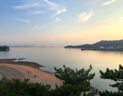 天使之路旁的约束之丘,这里是眺望天使之路全景的好去处!也是恋人的胜地哟! 我们住在小豆岛国际,个人觉得从我们酒店房间望出去的天使之路更美呢! 夕阳西下和闺蜜们来到这里,真的好浪漫耶! 在这里看着情侣们...