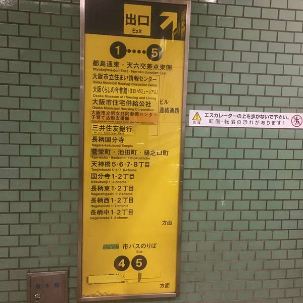 因为就住在这站附近, 住大阪的几天, 这站是必经之地。 去各处游玩, 都是从这站进出。 感觉这站还是蛮方便的, 也是个大站, 有换乘路线。 看进进出出的人很多, 比较热闹的一站。 这站还能换到JR, 不过JR不能用周游券乘坐, 需要另外购票。 购票非常方便, 都有指示牌, 跟着指示牌走就好找了。 有时就参考这站内挂示的路线图, 路线图上很清晰地写着可以换乘的线路, 而且地铁和JR等各线路的交叉路线也标识得很清楚。 看这线路还分几个圈子, 若超出圈子就收费不同, 而且能换乘的线路也不同。 在站内等车很方便, 只要看准了班次, 车子还是很准点的, 绝对不会提前或晚点, 这点很佩服的。 看车子颜色就可以区分是不是自己要坐的地铁。 车厢内座位很舒服, 因为是冬季, 车厢内柔软的沙发椅坐着就感到特别暖和。 乘坐地铁的人并没有传说中的那么多, 总是能坐到座位。 车厢内播音很清晰, 到站前都会播报靠站信息。 哪个出口离哪处商圈近, 都会播报出来。 这样对于游客来说, 就便于寻找出口。 天王寺的出口也比较多, 之前查了地图, 看地下弯弯曲曲的通道, 选择对了出口, 还是很方便寻找目的地的。 站内环境很干净整洁, 厕所设施齐备, 感觉很满意的!