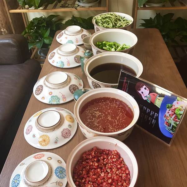 在朋友圈看朋友发说是网红店,老板是对双胞胎美女。这次来了之后果断导航过去了,地点很好找,就在夏夏旁边,紧邻是隔壁。 单品不多,但味道都超级一级棒!秘制擀面皮果然名不虚传,清爽、过瘾,小米椒赞赞哒!门头的花花也超级漂亮!喜欢!大赞美女这家店!