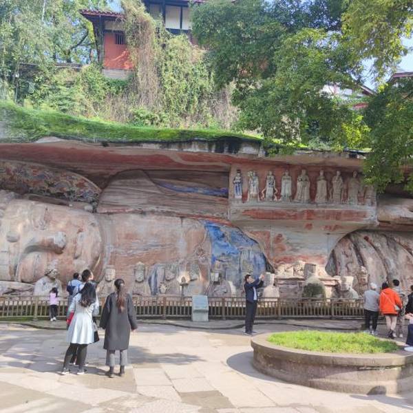 行程安排的蛮合理的,是这几天吃的唯一好吃的团餐。导游小罗的佩琪小旗杆我特别喜欢,讲解的也好。大足石刻雕像保存很好,唯一遗憾的是没有时间在大足石刻博物馆看4d电影,回到解放碑刚好五点,恰好可以去坐网红...