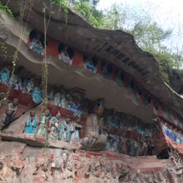 行程安排的蛮合理的,是这几天吃的唯一好吃的团餐。导游小罗的佩琪小旗杆我特别喜欢,讲解的也好。大足石刻雕像保存很好,唯一遗憾的是没有时间在大足石刻博物馆看4d电影,回到解放碑刚好五点,恰好可以去坐网红轻轨李子坪站,一天结束不算累,这样的行程刚刚好。