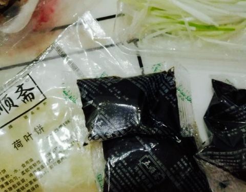 没去之前就在网上搜到了这家店,有次从文化路过的时候见到门口人气很旺,原来是家老店了,看来我有点孤陋寡闻了,在顺城街和其它好多地方都有分店,离单位很近,就决定今天下班以后买来试试,店面位于文化路科技市场附近,门面很明确,刚往门口一站,不一会儿就围过来很多人,排起了长队,团购价钱和到店里买价位一样,就是团购的多了一袋酱,可以买半套,也可以买一套,这样安排很合理,就是有的人只能吃半份,也不至于浪费,我定的半份,包括三袋酱,一包葱丝,一袋饼,一盒烤鸭,饼都是用真空包装的,葱丝也是用保鲜袋包装好的,酱都是一小包一小包的封好的,觉得很整洁整洁,虽然排了很长队,不过等候时间也不是很长,这就是效率,烤鸭的确很爽口,先用饼抹上酱,然后再添两块烤鸭,再加些葱丝,然后一卷,吃在嘴里满口流油,这也算是我吃过的最地道最正宗的烤鸭了,赞一个??。