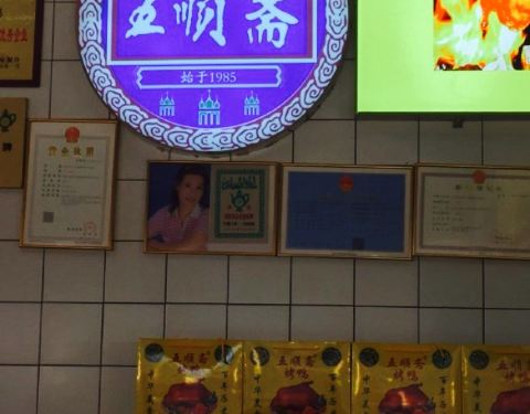 郑州老字号【五顺斋烤鸭店】创立于1985年,当地一个连锁品牌的专做烤鸭外卖的店面,在郑州市有几家连锁店,这家位于文化路白庙路的店面装修古式点雅,古色古香灯火辉煌的门头,气派的大档口,金黄肥美的整鸭挂门...郑州老字号【五顺斋烤鸭店】创立于1985年,当地一个连锁品牌的专做烤鸭外卖的店面,在郑州市有几家连锁店,这家位于文化路白庙路的店面装修古式点雅,古色古香灯火辉煌的门头,气派的大档口,金黄肥美的整鸭挂门头,每次到了用餐时间都在排队,非常的受欢迎!