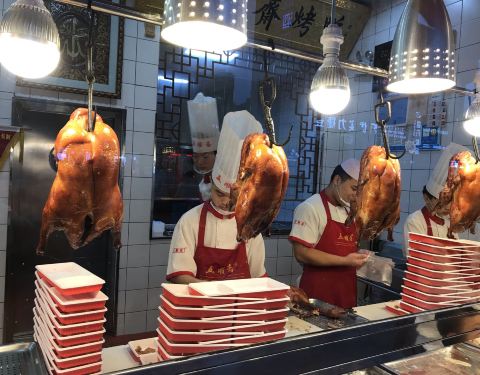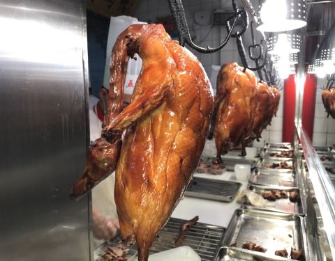 ...古香灯火辉煌的门头,气派的大档口,金黄肥美的整鸭挂门头,每次到了用餐时间都在排队,非常的受欢迎
