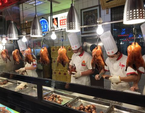 - ...鸭的,透着玻璃可以看的清清楚楚的,鸭肉装一份,鸭架子另做椒盐处理,到手的都是热乎乎的新鲜出炉的