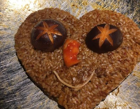 - 芝士炒饭应该是特色吧,现场炒的,炒饭里有炸好的米粒,吃起来口感不错,还摆了个心形。会再来