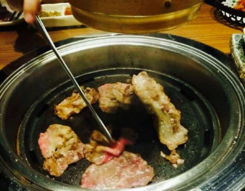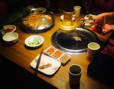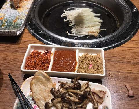 这是一家点菜方式很特别的烤肉店,拿着筹码看实物点菜,免去和实物不符的烦恼。每个餐桌上有两个炉子,因此在这里不仅可以吃到原汁原味的烤肉,还可以同时涮一些素菜。荤素搭配,让你这一餐吃得更加健康。
