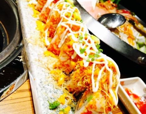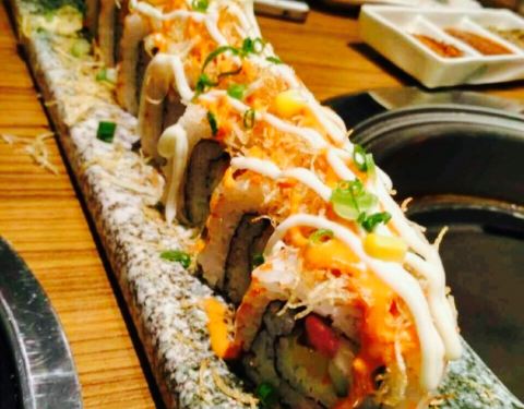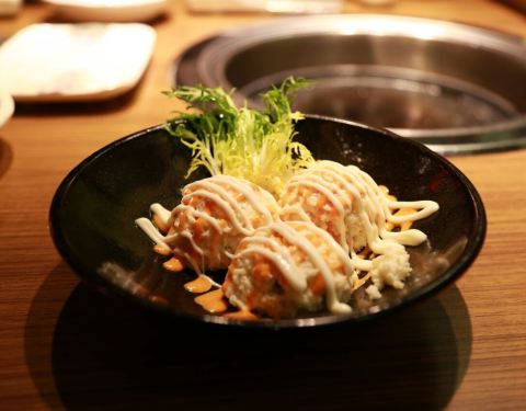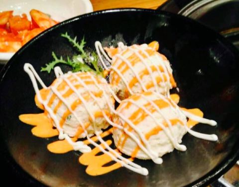 - 烤肉属牛肉最美味,肥瘦相间,口感很好。第一次尝了这个团购里的寿司,记不住名字,摆盘漂亮,味道也入味