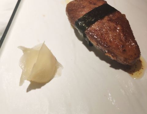 - 鹅肝手握是被推荐最多的菜品,分量太十足了,好大一块,初尝口感确实不错,但是会腻