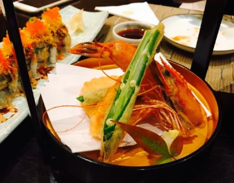 日式装修,注重细节,很有感觉,去的较早,安排的包间,而且在点单的过程中,服务员很贴心的提醒菜量,很满意! 刺身点的三文鱼,甜虾,北极贝,都不错,特别是甜虾,很喜欢!龙虎卷超大一份,内容很丰富,用料十足!虎虾沙拉好大一份,有2只炸虾天妇罗,其余的可以当成蔬菜沙拉吃,里面的玉米很喜欢!鹅肝手握是被推荐最多的菜品,分量太十足了,好大一块,初尝口感确实不错,但是会腻。