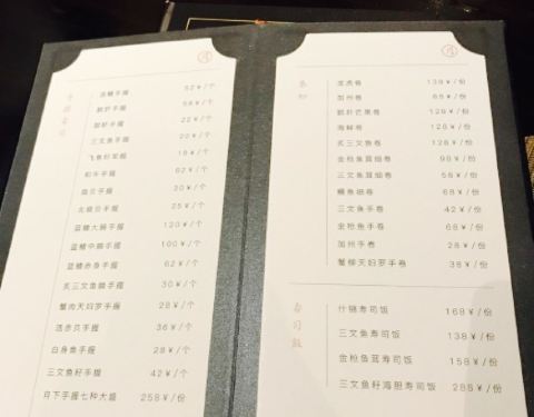带日本来的朋友去吃,他看了菜单说“很贵”,他说刺身十分入味很清新。说这边的日料都特别棒,味道还不错,吃的特别饱。不过菜单没有图片,没有日文,既然是日料店,菜单有日文就更好了。服务生说因为更新快,所以菜单没图片。高级餐厅应该可以用ipad做图片菜单,点餐了吧。希望能改善就更好了。