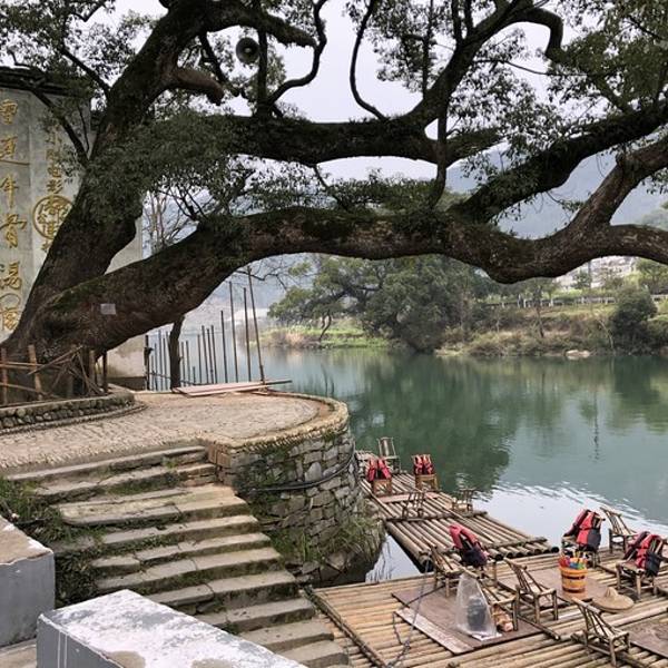 当然商铺是免不了的,还有竹筏在等着游客在江岭和晓起之间的一个路边小村,免费开放,因拍了个电影所以有名,沿河边可以看到板凳桥,以及那个餐馆。当然商铺是免不了的,还有竹筏在等着游客。