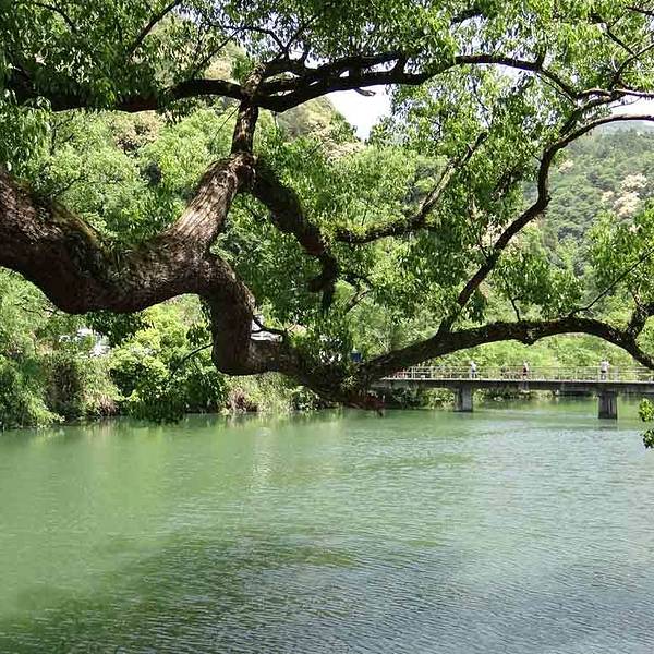 上坦村是一个处处透着古朴韵味的漂亮古村,清清小河流水从村边绕行而过,上坦村真正的主角则是村口的香樟树,枝干苍劲有力,蜿蜒伸展,垂于小河之上,颇有意境。