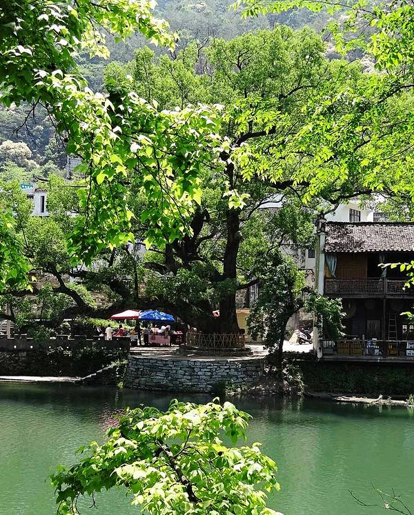 上坦村是一个处处透着古朴韵味的漂亮古村,清清小河流水从村边绕行而过,上坦村真正的主角则是村口的香樟树