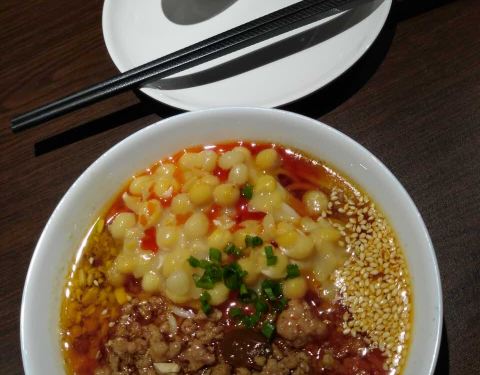 豌杂面超级香 我竟然把碗杂面里的豌豆一个一个挑吃完了 大爱冒脑花 口感软滑 兔头一个也很实在 ...