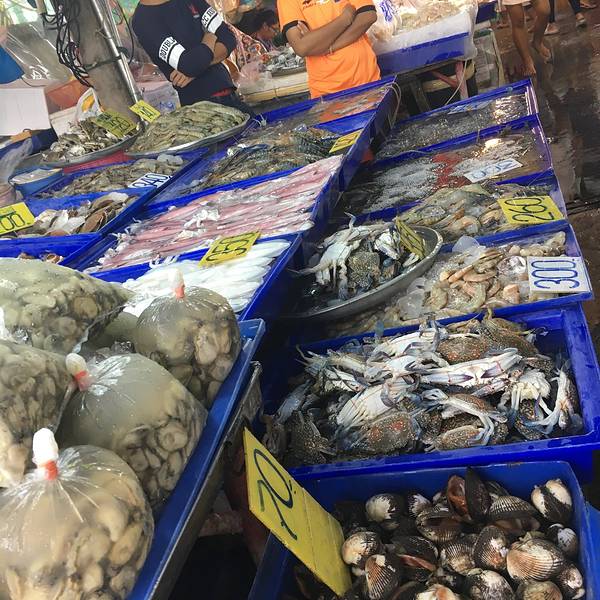 早上去顶层的泳池游了两个小时之后,和小伙伴准备去海鲜市场。这里的市场麻雀虽小,五脏俱全,各种海产品应有尽有,海鲜还很便宜! 我们买了五个人的分量,才花了两百左右人民币,在国内估计得上千了!!所以喜欢海鲜的朋友,来到这里,可以完全敞开肚皮尽情吃!!我们的出品!!还不错吧🙈🙈