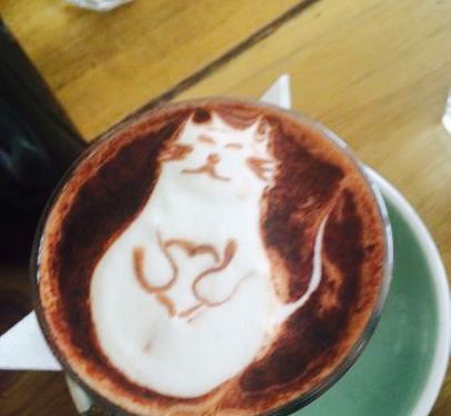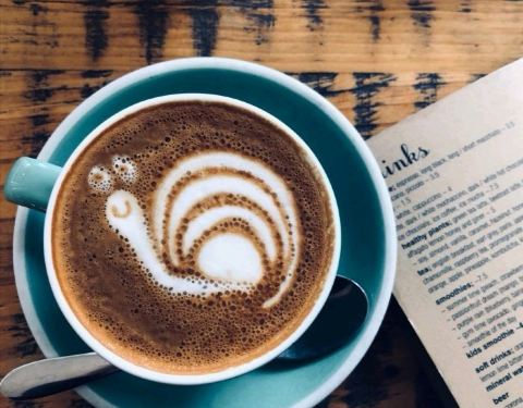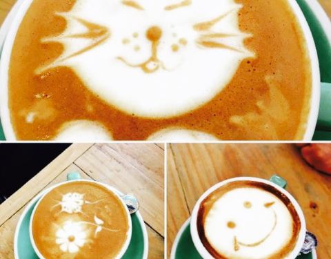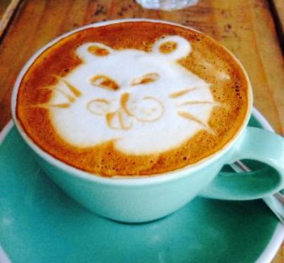 这家咖啡店最有名的就是咖啡的拉花了,里面的动物图案拉花都很漂亮哦,我要可以一个蜗牛的拉花,还有...