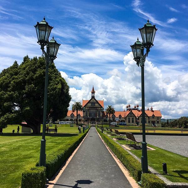 图为经典的罗托鲁瓦市政厅。图为在市政厅花园广场玩耍。图为抓小鸡。
