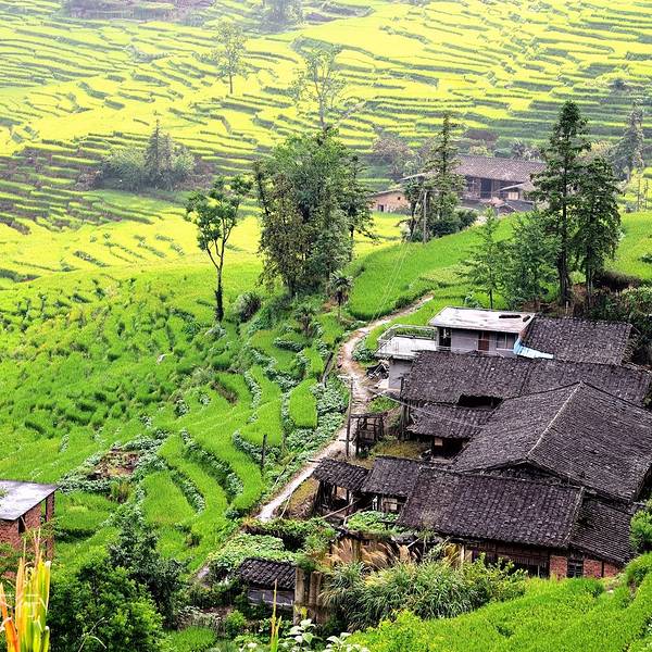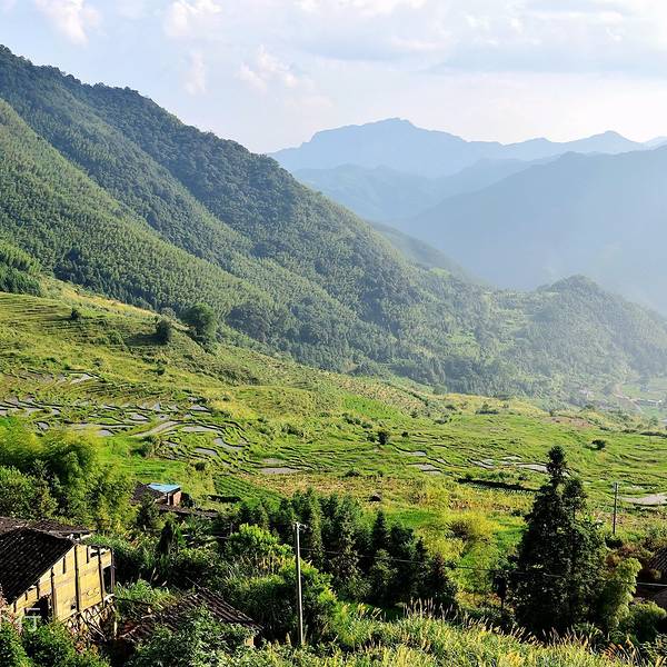尤其是云雾缭绕的时节,让人简直有惊为仙境的感觉。田在村中,如诗如画,房在田间,人在画里