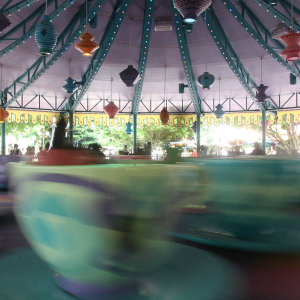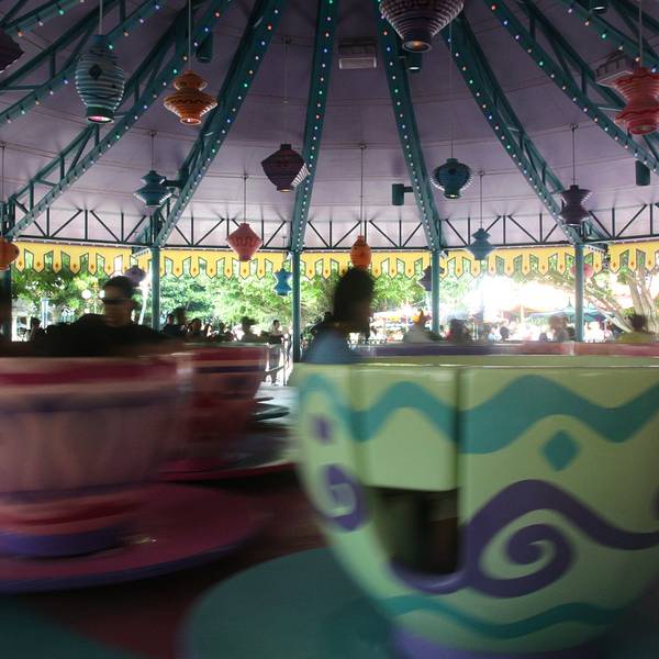 坐进巨型彩绘茶杯,在缤纷的五彩斑斓的世界中和着轻快的音乐声中疯狂旋转起来。一起来幻想世界举行盛大的“非生日派对”吧!迪士尼《爱丽斯梦游仙境》充满节日气息的欢快音乐响起,茶杯就会开始前后移动和旋转,近50个纸灯笼在头顶舞动,令这场别开生面的派对更加精彩。全场共有18个精美茶杯,每个茶杯最多可容纳4名宾客。派对开始时,所有被放在同一个巨大转盘上的茶杯会分成三组开始旋转。这种疯狂的玩意儿,恐怕只有在幻想世界里才能让您体验到!