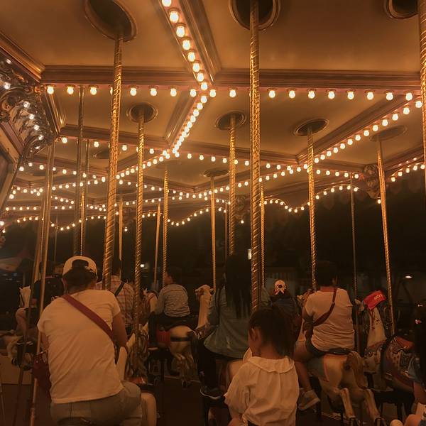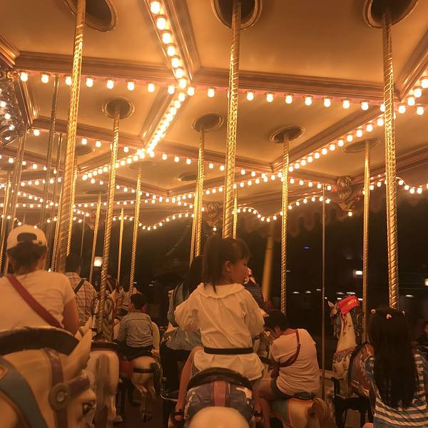#写点评拿旅行基金#很意外的迪士尼里面的旋转木马竟然是排队很久的,排队时间超过许多项目,可能是大家童心未泯吧,夜景很好看,就是旋转木马而已。