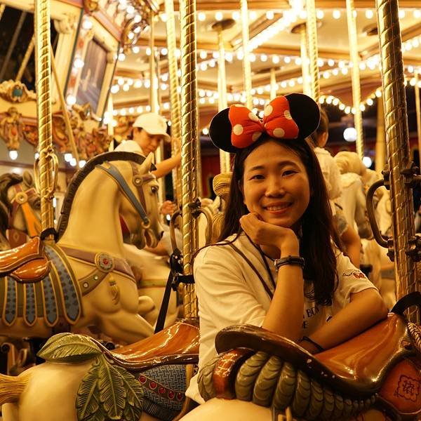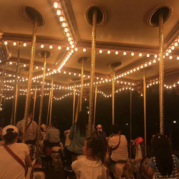 很意外的迪士尼里面的旋转木马竟然是排队很久的,排队时间超过许多项目,可能是大家童心未泯吧,夜景很好看