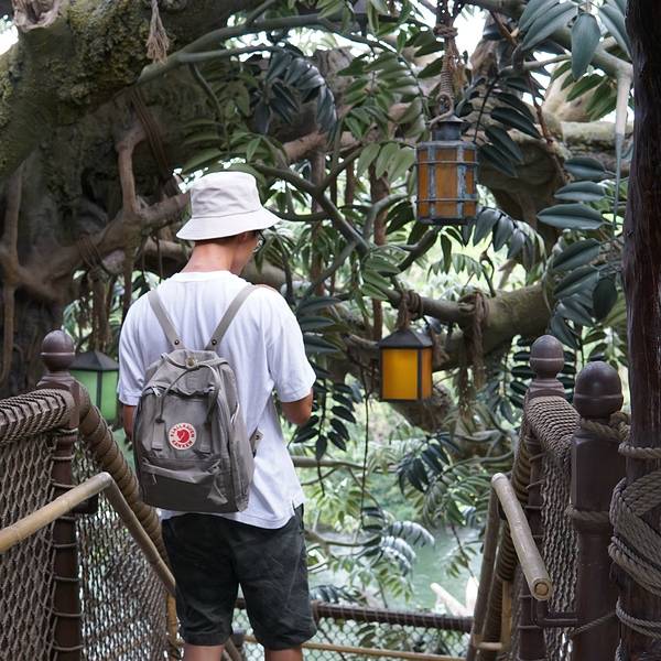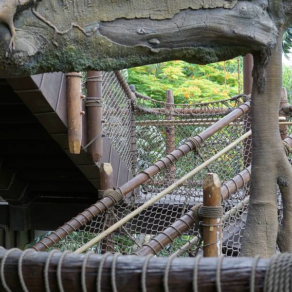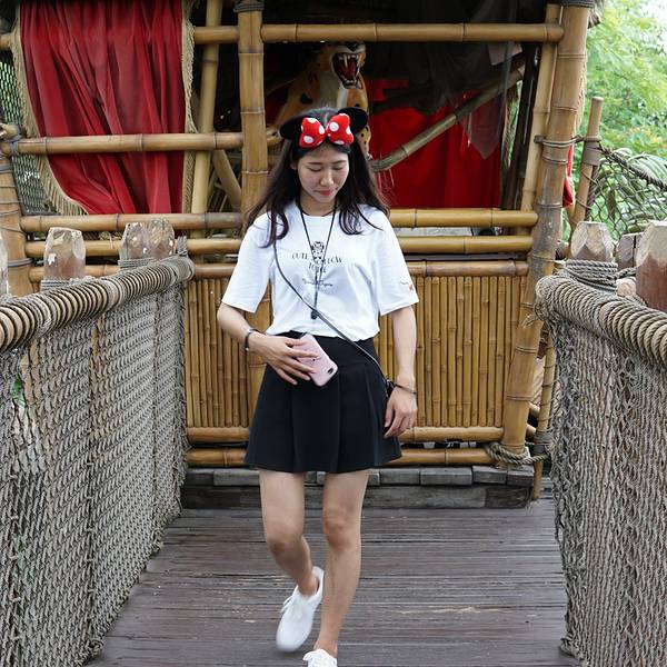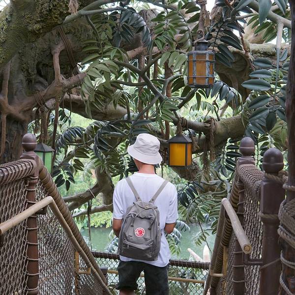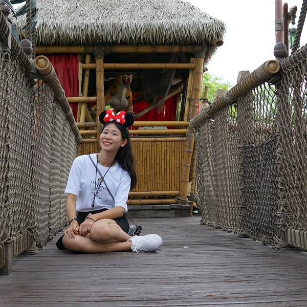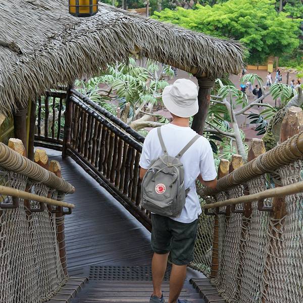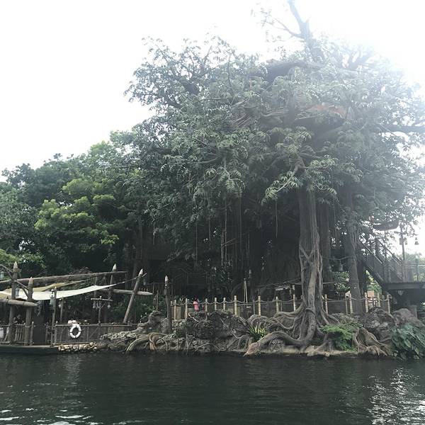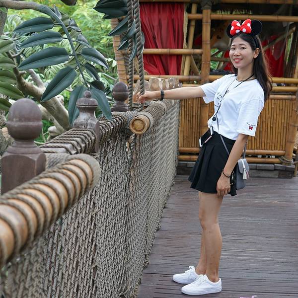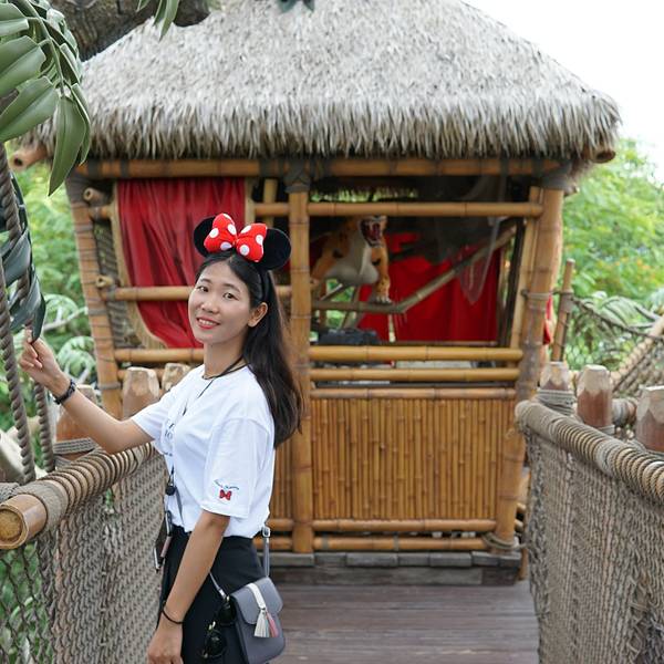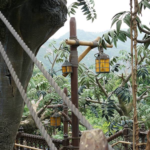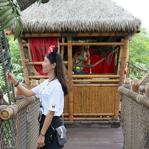 迪士尼乐园里的泰山树屋,我们是第二天入园的时候去的。应该是还要坐船过去的,记不太清了。顺着楼梯上去,绕一圈就下来了。不太高。