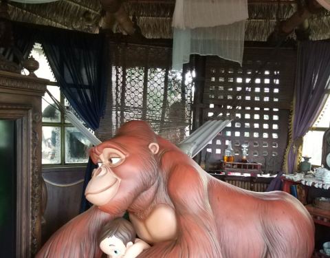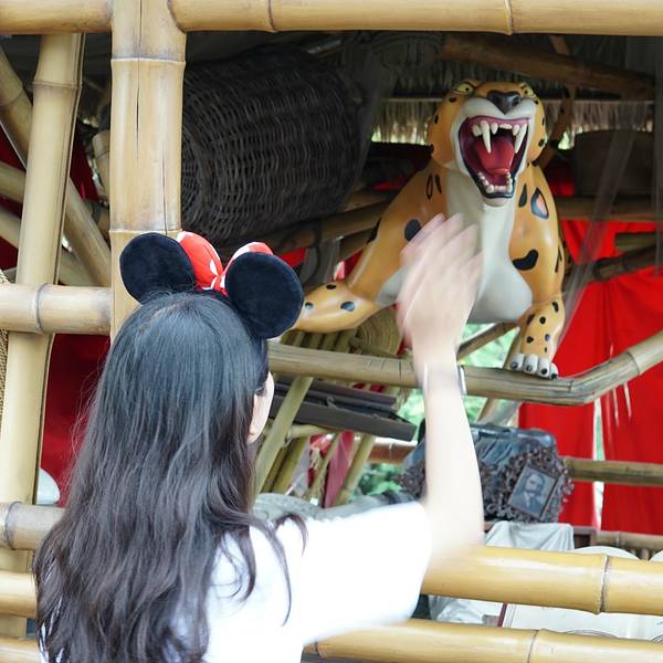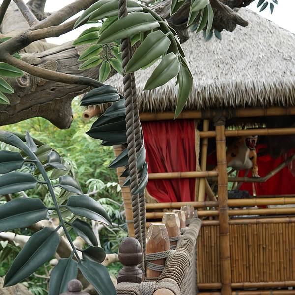 有种原始的味道,场景非常逼真,有种探险的感觉。树屋造的挺精巧的,也是建在树上的,不是太高,可以顺着楼梯爬上去,比例也是按照人猿泰山的比例来做的,就是声音效果一般,没什么可以看的地方,互动性一般,只能乘坐木筏参观泰山树屋,听到了人猿泰山的传奇故事,树下还有一间互动式游戏室可以进行实验和弹奏乐器,可以重温一下里面的情节,感觉还行吧。
