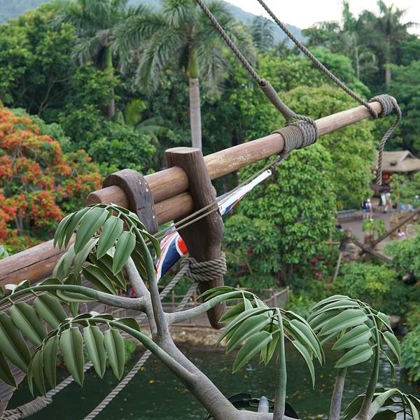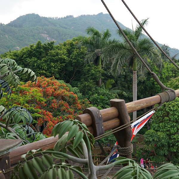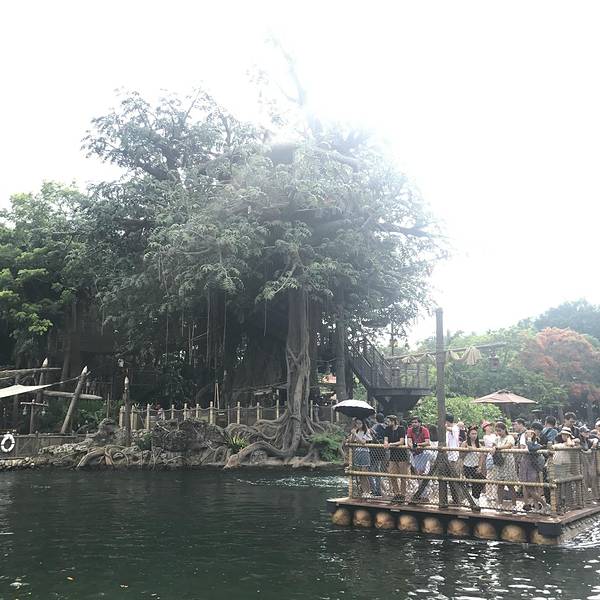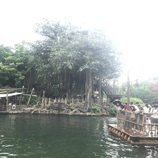 迪士尼乐园里的泰山树屋,我们是第二天入园的时候去的。应该是还要坐船过去的,记不太清了。不太高