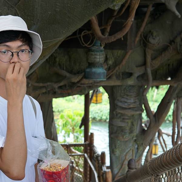 经过泰山树屋,需要坐船到对岸,我们那天6点这个项目就关掉了咯。又下起了小雨,灰蒙蒙的,光线很不好招呼这个老虎,然后广播有声音,吓得要死就这个爆米花,实在是太大了,如果去看电影我一定吃得完,但是这一天跑来跑去,吃不完,后来扔掉了,好可惜好浪费