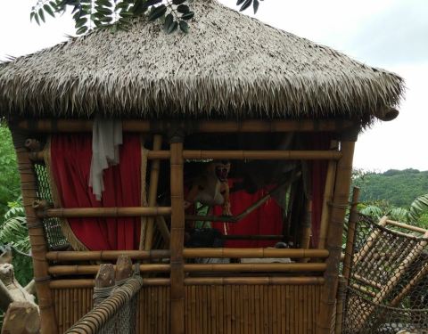 泰山的树屋需要做筏子,摆渡一个热带雨林的河流才能过去,开始都觉得是不是只是增加一点趣味,后来才发现,这是控制人流的方法,如果人多了,大家可能会拥挤着爬上树屋,还不安全,游览体验还都不好。
