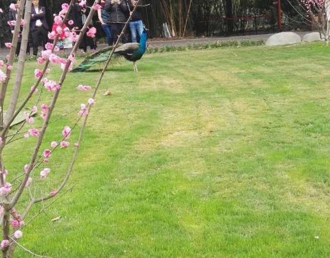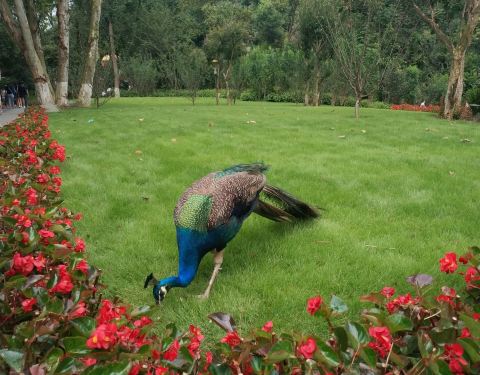 天鹅湖是熊猫基地里面的一个景点,可能因为八月的成都太热了,没有见到任何天鹅,就是一个小人工湖,没有什么特色,有点失望。在旁边反而见到一只孔雀。