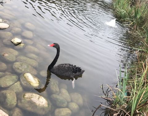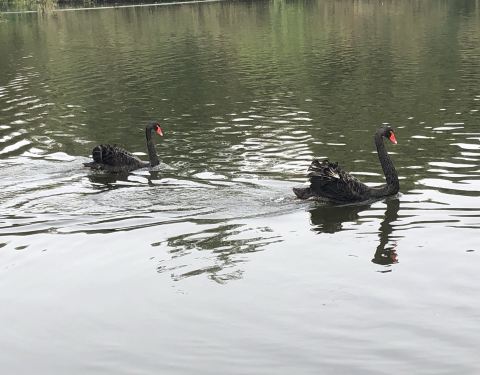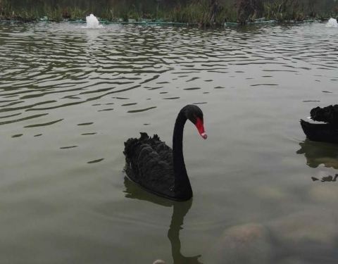 熊猫繁殖基地里的一个小湖,里面有好些个天鹅流来游去。很是悠闲,不过没什么人过来看,都是去看大熊猫的。还有黑天鹅在里面,第一次看到。