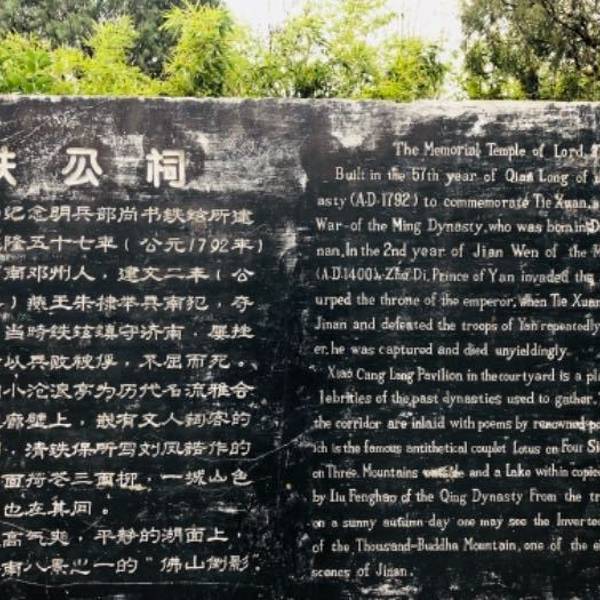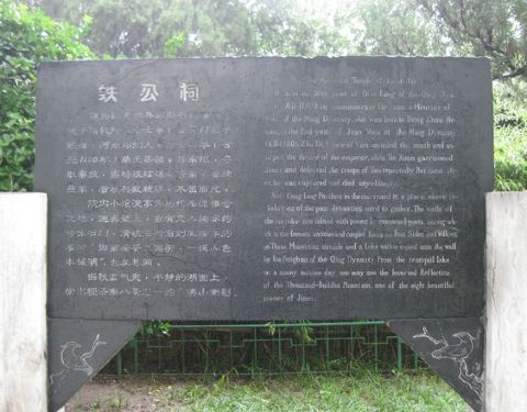 铁公祠在济南大明湖畔北岸,济南人民对明朝初年,忠于职守、誓死卫城的铁铉的缅怀而建立的铁公祠在济南大明湖畔北岸,济南人民对明朝初年,忠于职守、誓死卫城的铁铉的缅怀而建立的。如今,铁公祠已成了大明湖一个著名景观。刘鹗在《老残游记》中曾绘形绘色地描写了在铁公祠观佛山倒影的情景。铁公寺大...铁公祠在济南大明湖畔北岸,济南人民对明朝初年,忠于职守、誓死卫城的铁铉的缅怀而建立的。如今,铁公祠已成了大明湖一个著名景观。刘鹗在《老残游记》中曾绘形绘色地描写了在铁公祠观佛山倒影的情景。铁公寺大门两侧是半壁曲廊,廊壁上辟有花窗,框成幅幅小景。小院坐北朝南,前檐出厦,歇山起脊,红柱青瓦,显得古朴而肃穆。 展开