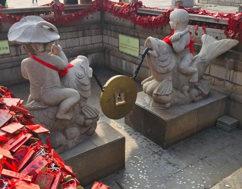 北极庙或者北极阁在大明湖畔,顺着沿湖路线走,看到一高高的台阶就是他了,里面供奉着真武大帝,据说是济南最大的道教庙宇,但是我感觉其实并不大,只有前殿、后殿和配房构成,正殿挂有“位极天枢”匾。进去后有人给你稍微讲解然后送你祈福牌,等你写完后会向你收取灯油钱。