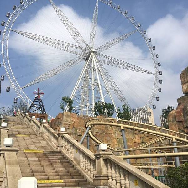 摩天轮超级漂亮 晚上去做很棒 排队的人挺多的但是很快 摩天轮超级漂亮 晚上去做很棒 排队的人挺多的但是很快 从门口排大概只需要半个小时不到 里面能玩的还挺多的