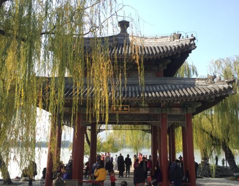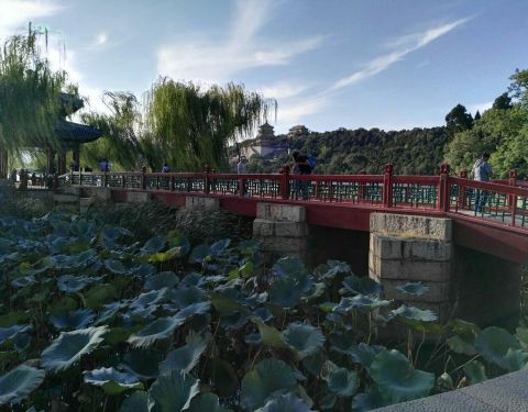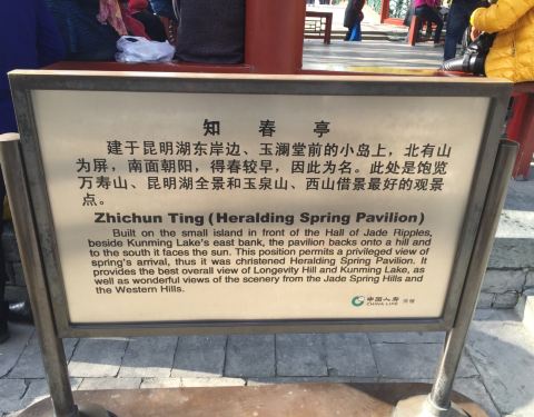 “知春”二字,源于宋诗句“春江水暖鸭先知”,每年春天昆明湖解冻总由此处开始,故取名知春亭。知春亭四面临水,在这里观景很不错。